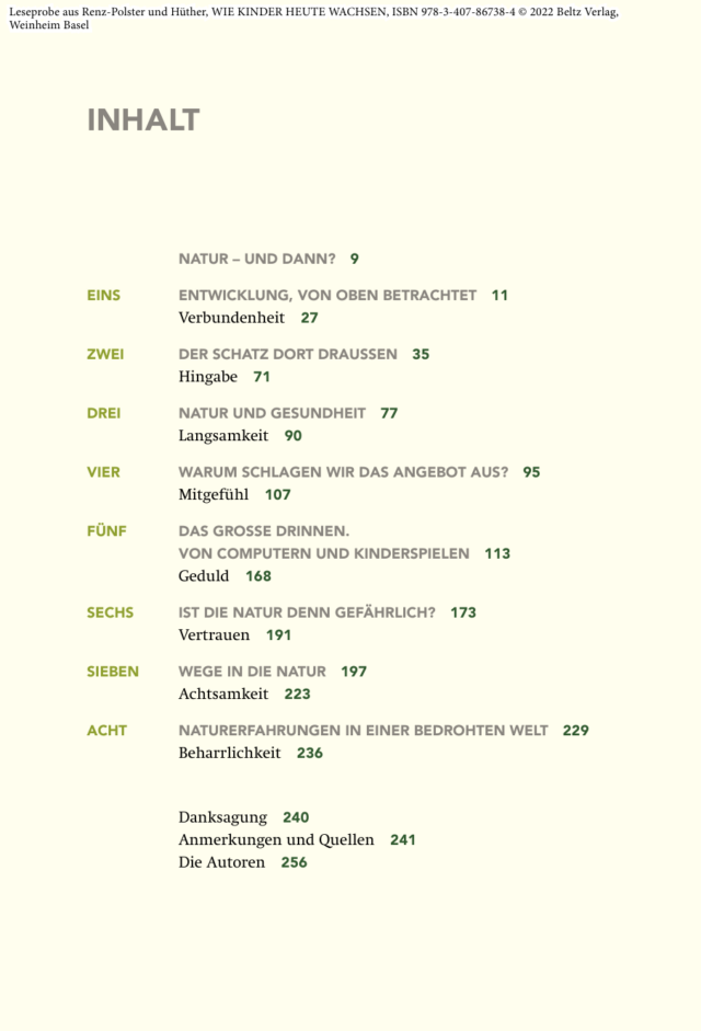 Wie Kinder heute wachsen: Inhaltsverzeichnis
