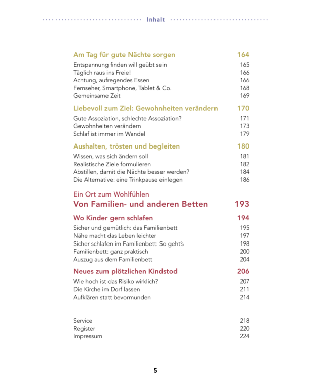 Schlaf gut, Baby: Inhaltsverzeichnis