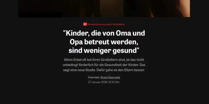 “Eine neue Studie (The Generational Gift: The Effects of Grandparental Care on the Next Generations’ Health and Well‐Being) zeigt jetzt allerdings, dass es nicht förderlich für die Gesundheit von Grundschülern ist, von Oma und Opa betreut zu werden. Woran das liegen könnte und was fraglich ist.”